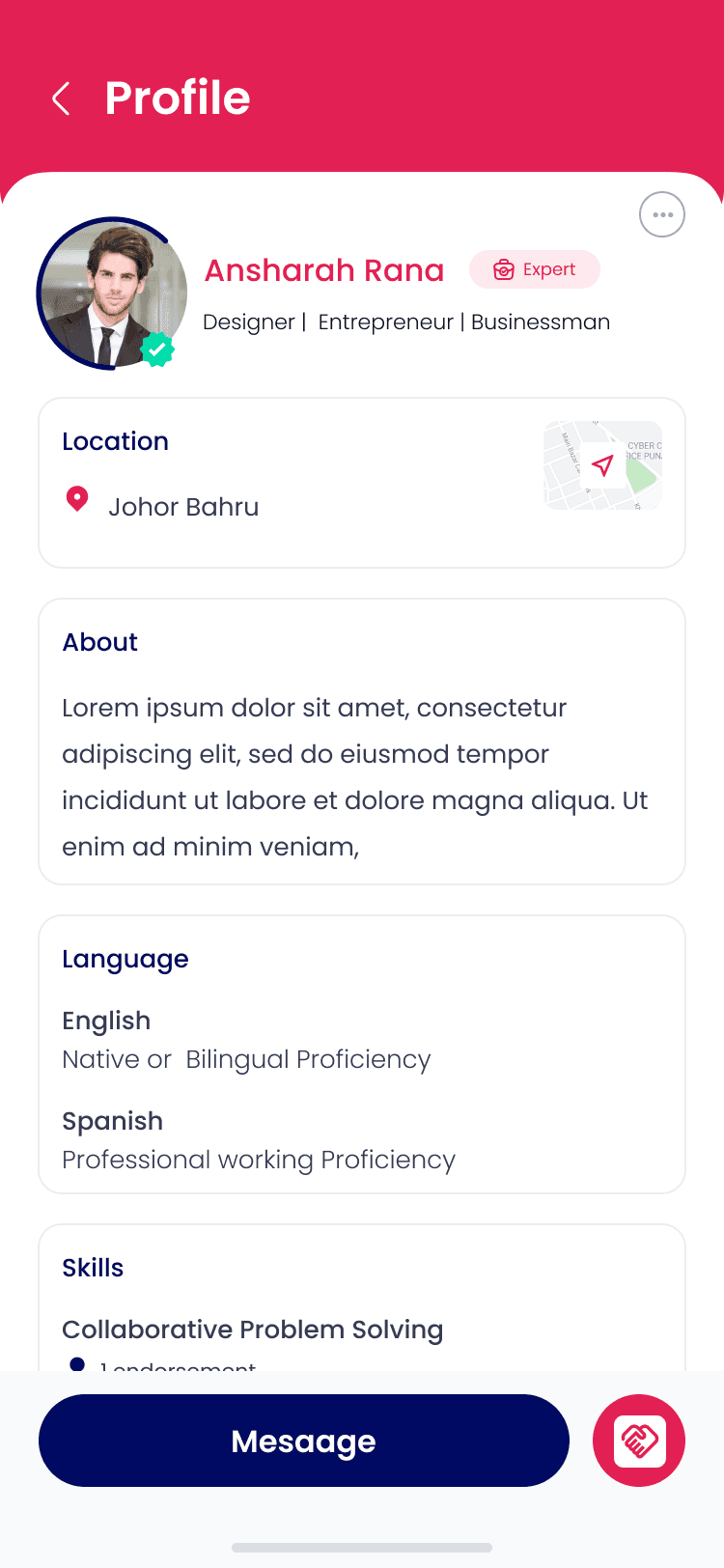 Get a complete view of each profile, including background, goals, and focus areas, before starting a conversation.